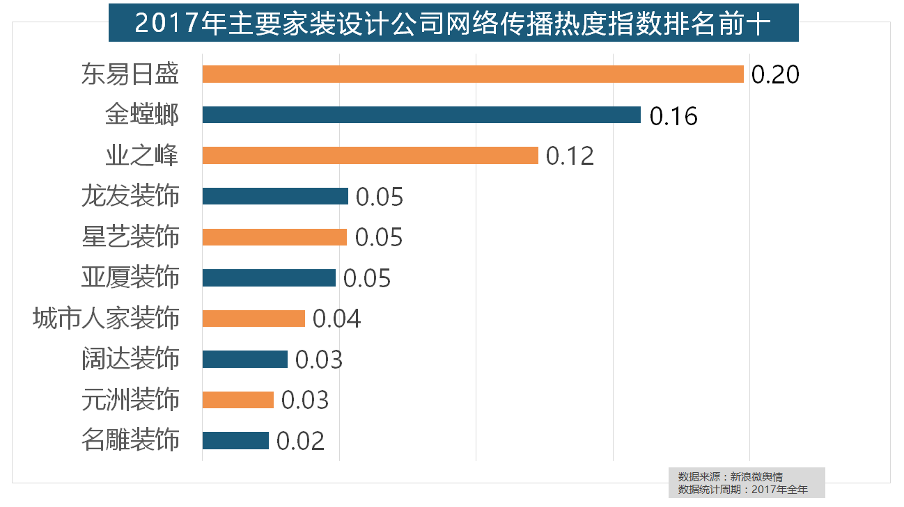 伴跟着我国度拆市场的繁荣,2017年,据新浪微舆情大数据阐发显示,东易日盛正在过去的一年中收集热度指数最高,正在涂料品牌年度热度榜单上,